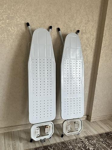 Гладильные доски с металлической перфорированной рабочей поверхностью и встроенной подставкой для утюга.