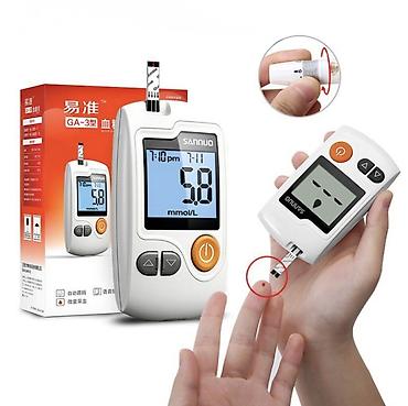 Удобный функциональный глюкометр Sannuo GA-3 для домашнего контроля уровня глюкозы в крови. Ланцетное устройство с регулируемой силой для прокалывания пальца; а также чехол для хранения глюкометра.