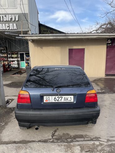 Volkswagen Golf III, 5‑дверный хэтчбек, тёмно‑синего цвета. Киргизские номера KG. Основные особенности: - Бензиновый двигатель (значок 2.8 на корме отсутствует — установлена эмблема «2S», фактичес...