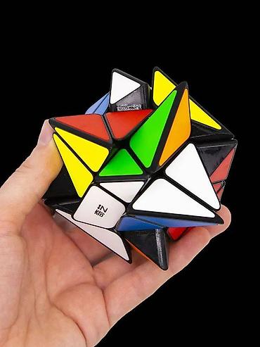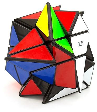 QiYi MoFangGe Axis Cube — так называемый шейпмод кубика Рубика 3x3x3. Собирается он такими же алгоритмами, но вот выглядит совершенно иначе. Почки каждый элемент здесь имеет различную форму, поэтому после нескольких поворотов пазл становится неузнаваем по внешнему виду. Это добавляет интереса при сборке.