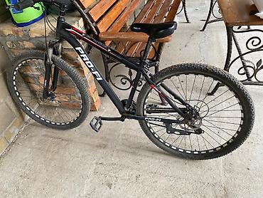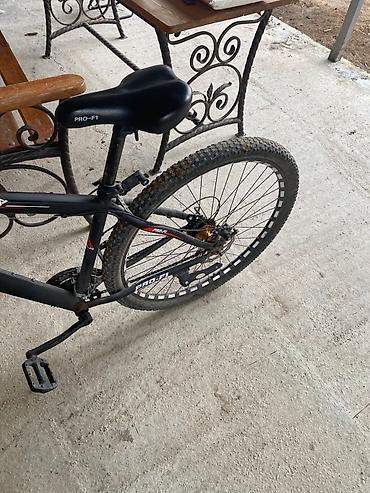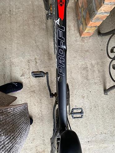 - Рама: алюминиевая, хардтейл, геометрия для кросс-кантри; окраска матовый черный с красными акцентами и крупными логотипами PRO-FI.