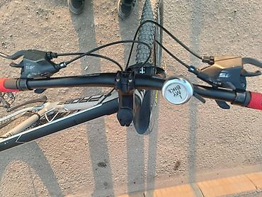 - Прямой широкий руль с красными грипсами, установлен звонок
