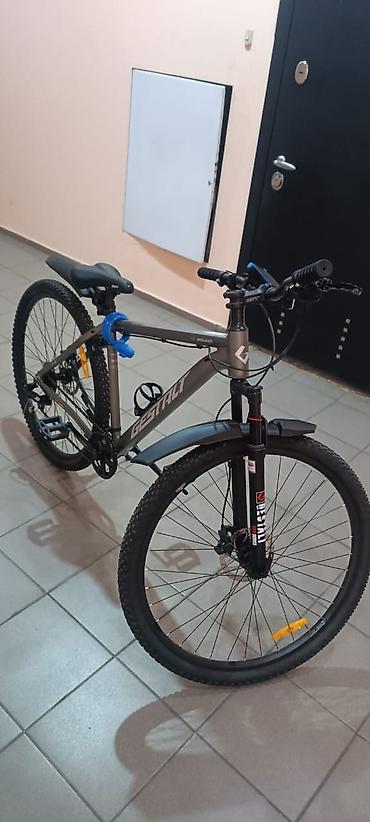Горный велосипед Gestalt (надпись на раме) с колесами 29". Алюминиевая рама хардтейл, внутренняя прокладка тросов. Амортизационная вилка Gestalt с ходом для городских и легких трейлов, крепление дискового тормоза. Передний и задний дисковые тормоза. Колеса 29" с покрышками полуслик/кросс-кантри, двойные обода, быстросъем переднего колеса. Трансмиссия многоскоростная с задним переключателем (кассета/трещотка многорядная), шифтеры на руле.