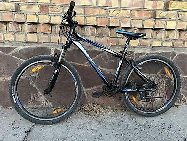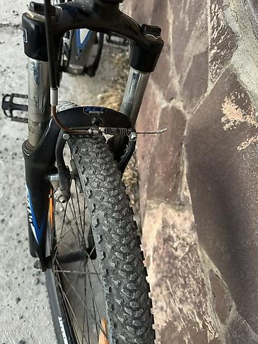 - Рама: алюминиевая, хардтейл, геометрия для кросс‑кантри. Цвет: черный/белый/синий.