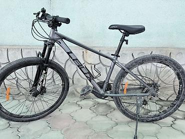 Отлично подходит для городских поездок и легкого бездорожья: уверенное торможение, удобная посадка, прочная рама и цепкая резина. Цвет — матовый тёмно‑серый/чёрный с графикой.