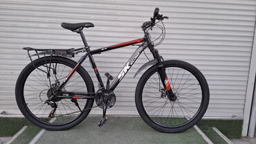 - Рама: стальная/алюминиевая хардтейл (по фото — треугольная геометрия с усиленной нижней трубой)