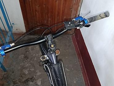 - Алюминиевый руль с заглушками, грипсы, синий анодированный набор зажимов/манеток.