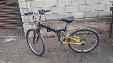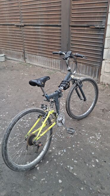 - Рама: складная, двухподвес (передняя вилка с амортизацией + задний амортизатор-пружина). Цвет: серо‑жёлтый.