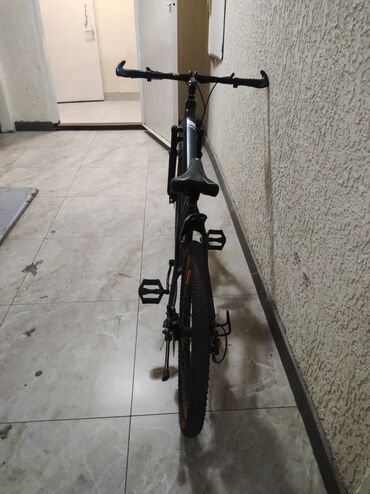 - Рама: жесткая, алюминиевая (по виду), треугольная геометрия хардтейл