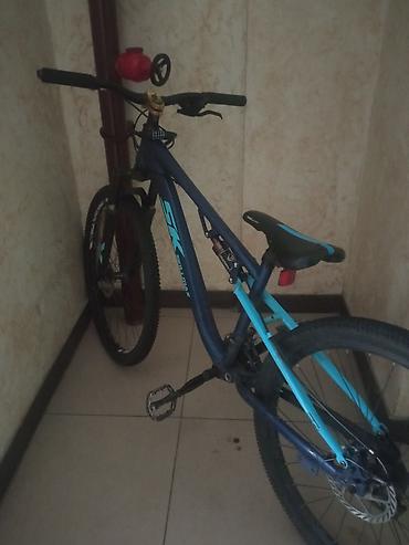 Горный велосипед STK (надпись на раме) — легкая алюминиевая рама, колеса 26", дисковые механические тормоза спереди и сзади. Амортизационная вилка, прямой руль с гайдами/заглушками, быстрые эксцент...
