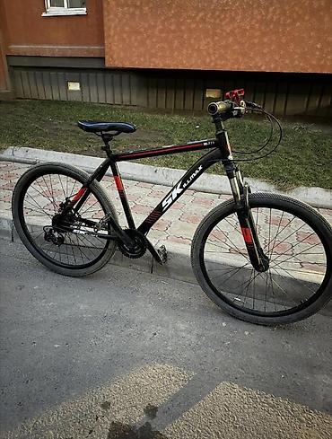 Подходит для городских поездок и прогулок по паркам и грунтовым тропам. Надежная дисковая тормозная система, широкий диапазон передач, комфортная амортизационная вилка. Цвет: черный с красными и белыми акцентами, брендирование SKILLMAX.