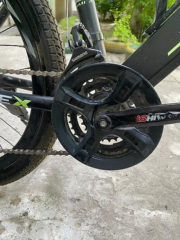 - Трансмиссия: передний переключатель Shimano, задний переключатель с мульти‑кассетой; система 3 звезды спереди (тройник), манетки ревошифт/триггеры на руле