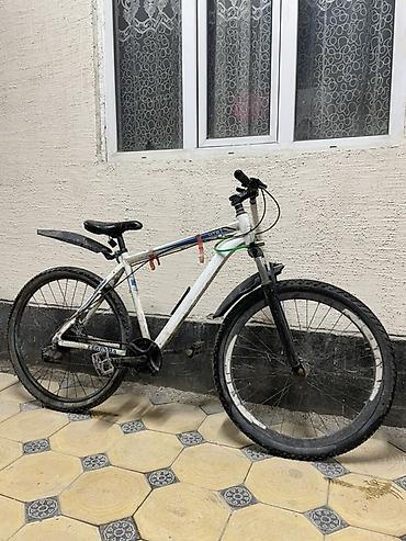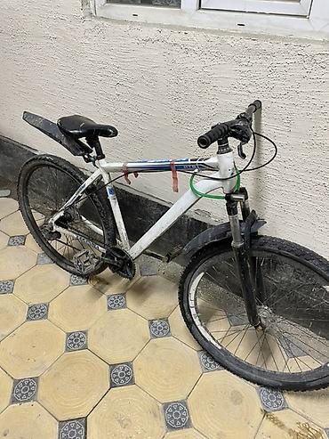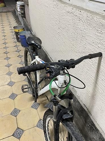 - Рама: стальная, классическая геометрия хардтейл, окраска белая с синими элементами