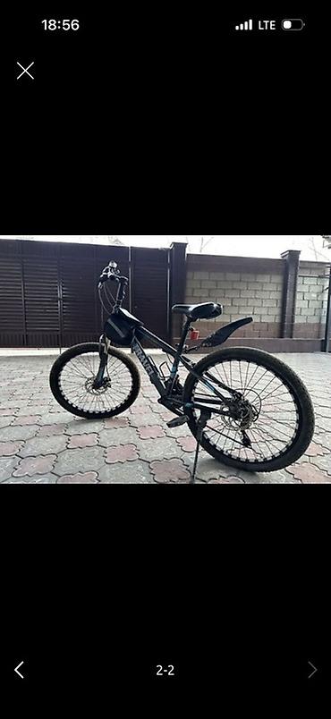 Горный велосипед с амортизацией - Рама: стальная, размер ориентировочно M, цвет синий - Подвеска: передняя вилка с амортизатором + задний амортизатор (двухподвес) - Колеса: 26", покрышки с внедоро...