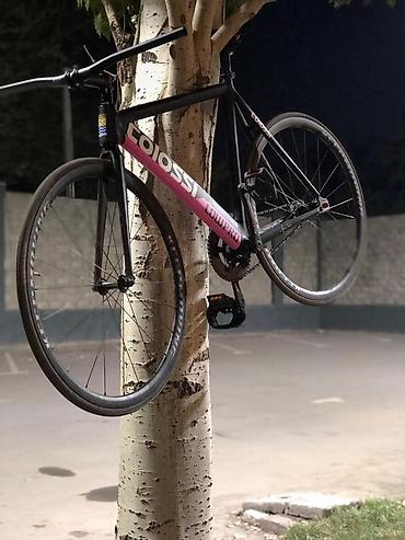 Городской фікс/сингл-спід велосипед (кастом). - Рама стальная, классическая геометрия, размер ориентировочно M–L (под рост ~170–185 см). - Руль шоссейный «баран» с обмоткой. - Колеса 700C: тонкие ...