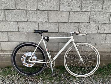 Подходит для города и трека: легкая рама, простая и надежная передача, быстрые колеса 700c с задним глубоким ободом для лучшей аэродинамики. Руль позволяет менять хват и комфортно ускоряться. Отличный базис для кастома или повседневных поездок.