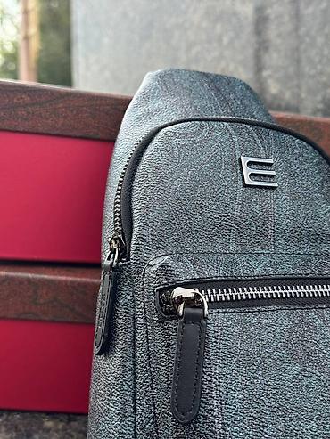 - Фурнитура: металлические молнии с крупным ходом, пуллеры из искусственной кожи, металлический логотип «E» на фронте.