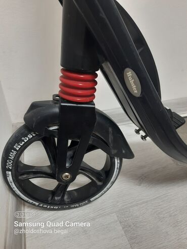 - Колеса 200 мм (надписи на покрышках 200 MM Hubster) — крупный диаметр для плавного хода и высокой скорости на асфальте.