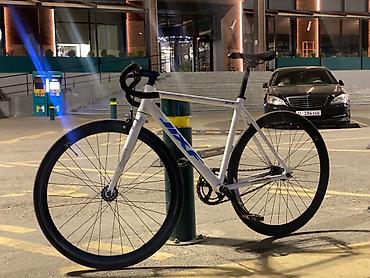 - Колёса: 700c, узкие обода под шоссейные покрышки; переднее колесо с тормозным диском/ободом под ободной тормоз, заднее — под фиксацию треком