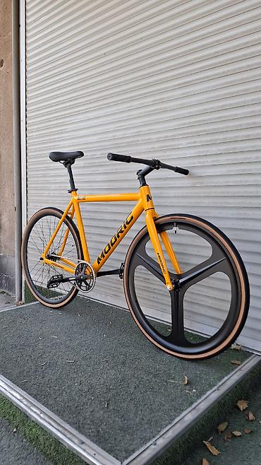 Подходит для городских поездок и велотрека: легкая рама, минималистичный односкоростной привод и аэродинамичное переднее колесо для набора скорости и устойчивости на прямых. Сборка ориентирована на чистую эстетику фиксед/трек и быстрый отклик на разгон.