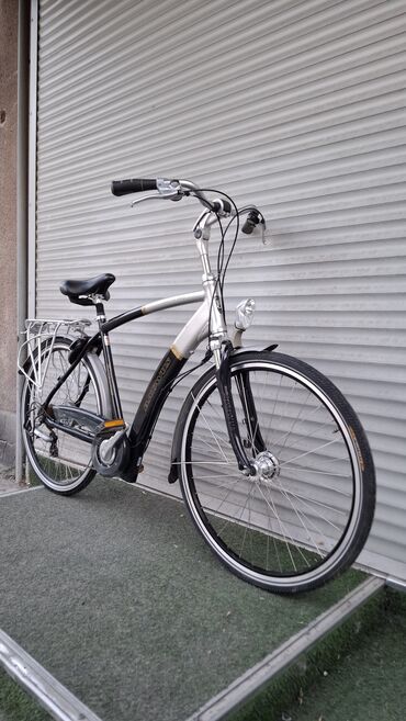 Идеален для ежедневных городских поездок: прямая посадка, тихий ход, освещение от динамо, практичный багажник и полностью закрытая трансмиссия. Цвет: черный/серебристый с золотистыми акцентами, фирменные логотипы Batavus.