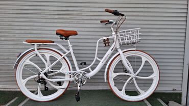 Идеален для города и прогулок: удобная вертикальная посадка, плавный ход, возможность перевозить покупки или вещи в корзине и на багажнике. Стильный бело-коричневый дизайн с литыми дисками привлекает внимание и не требует постоянной правки спиц.