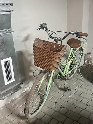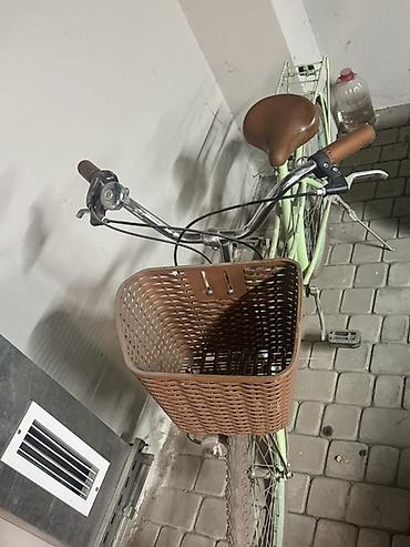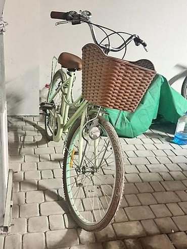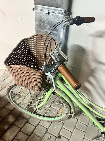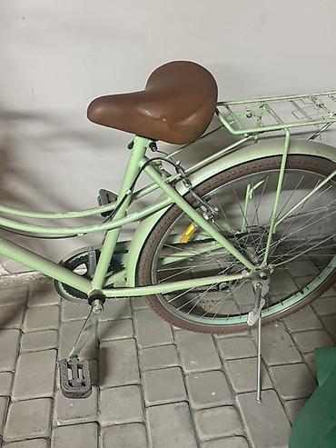 Городской велосипед с женской рамой в пастельно‑зеленом цвете.