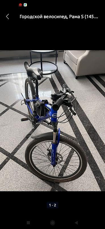 Городской велосипед, размер рамы S (ориентировочно на рост 145–165 см). Легкая алюминиевая рама синего цвета, колесная база компактная и маневренная.