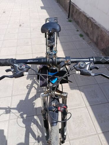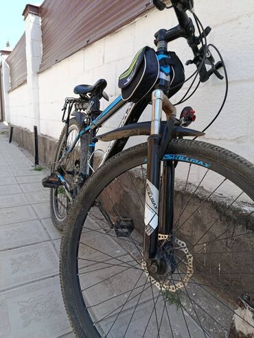 Горный велосипед Skillmax, предназначенный для езды по пересеченной местности. Оснащен дисковыми тормозами для надежного и эффективного торможения в различных условиях. Черная рама с синими акцентами придает ему стильный вид. Велосипед имеет переднюю амортизационную вилку, которая обеспечивает комфорт при езде по неровным дорогам. Удобное сиденье и эргономичные ручки руля способствуют комфортному управлению. На рулевом стакане закреплена сумка для мелких предметов, что удобно для хранения ключей, телефона или других необходимых мелочей во время поездки.
