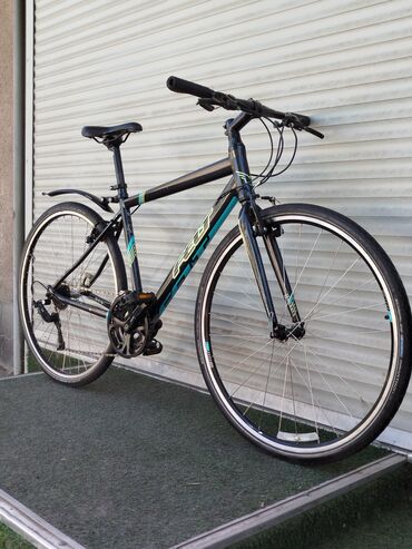 Подходит для повседневных поездок, велодорожек и фитнес-катания: легкий на ход, быстрые шоссейные колеса, удобный контроль благодаря прямому рулю.