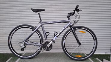 Подходит для быстрых поездок по городу, велодорожек и пригородных маршрутов. Легкий ход на асфальте, уверенное управление, широкие диапазоны передач для подъемов и скорости. Цвет — серый металлик с фирменной графикой SCOTT.