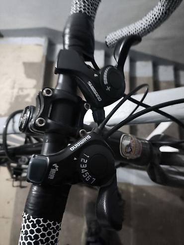 - Трансмиссия Shimano: манетки на руле с диапазоном 1–7 (сзади) и передним переключателем на тройник — всего 21 скорость. Четкая и понятная индикация передач.