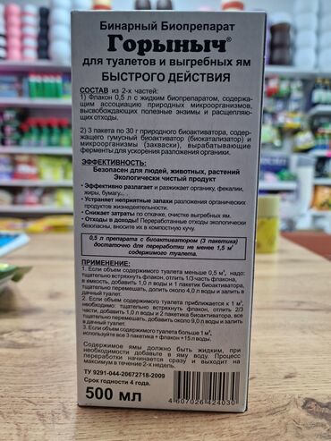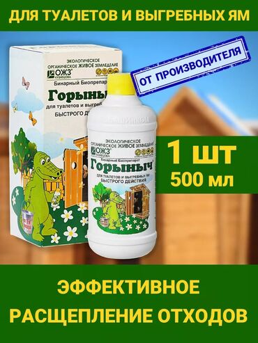 Горыныч – бинарный биопрепарат для туалетов и выгребных ям. Содержит споры бактерий, способных высвобождать полезные энзимы, расщепляющие отходы. Эффективно разлагает и разжижает органику, фекалии, жиры, бумагу. Устраняет неприятные запахи разложения органических продуктов жизнедеятельности.
