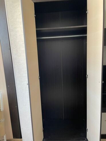 - Левый модуль: высокий шкаф-колонна с двумя дверцами.