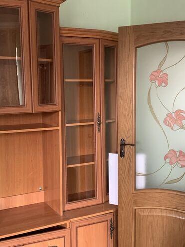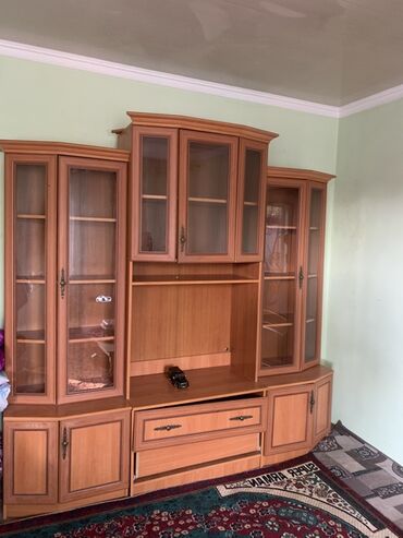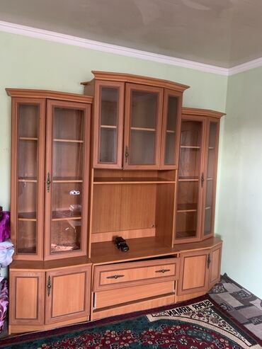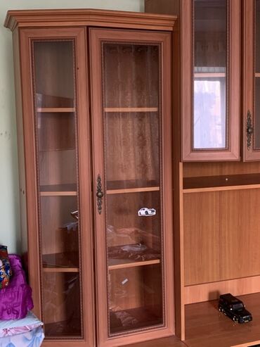 - Верхние витринные шкафы над ТВ-нишей с остеклёнными фасадами.