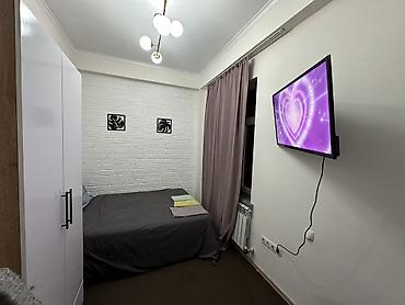 Ночь 1900 сом Стильные апартаменты-студия для краткосрочного проживания: - Двуспальная кровать, постельные принадлежности и полотенца. - Отдельный санузел с душем, феном, зеркалом, гигиеническими ...