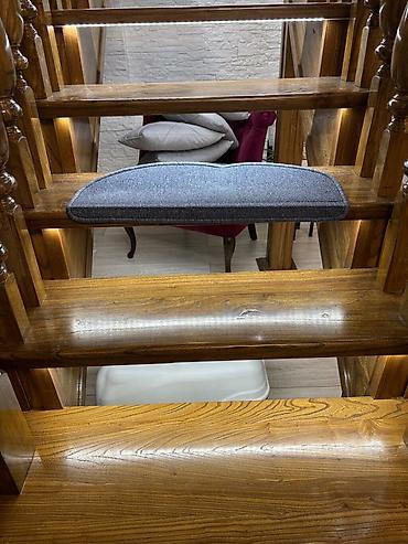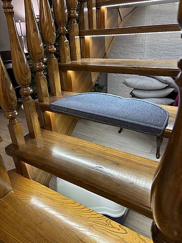 Накладки-коврики серо-сине-графитового цвета на ступени лестницы для их сохранения от царапин и повреждений а также предовращяет скольжение. Комплект ковриков из всего 17 штук, 600 сом за 1 шт. Новые.