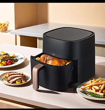 6 литров объёма, мощность 1500 Вт, сенсорная панель, температура 80–200 °C и таймер до 60 минут — просто поставили, нажали и занимаемся своими делами.