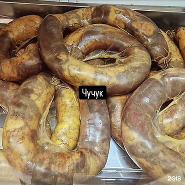 - Чучук — традиционная колбаса из конины/говядины (набор цельномышечных кусков и жир), в натуральной оболочке, подходит для варки/запекания/жарки и подачи ломтиками.