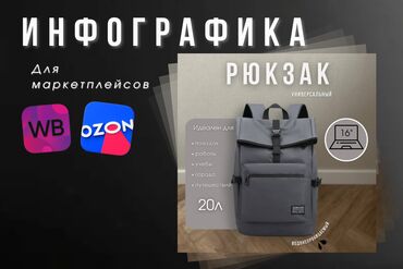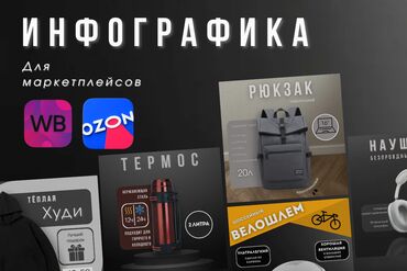Создаю дизайн карточек для маркетплейсов. Если вас заинтересовало моё портфолио, то готово выполнить ваш заказ! 350 сом за один слайд По подробнее в лс Вотсап