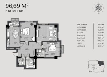 1 120 USD3 комнаты, 105 м², Элитка, 6 этаж, ПСО (под самоотделку)