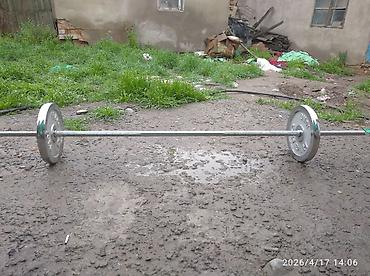 Гриф с дисками для штанги - Прямой металлический гриф с насечкой для