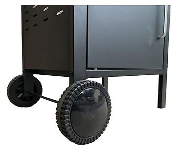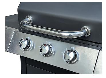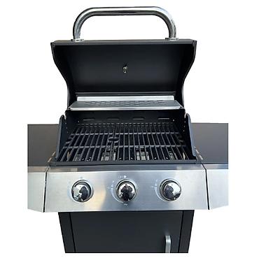 Качественный и функциональный газовый гриль имеет в своем арсенале встроенную систему поджига, три трубчатые горелки из нержавеющей стали и чугунные решетки. Дополнительная решетка для подогрева позволит сохранить вашу пищу теплой, а дополнительная горелка, встроенная в боковой столик, позволит приготовить различные соусы. Для удобства перемещения гриль оснащен транспортировочными колесами.