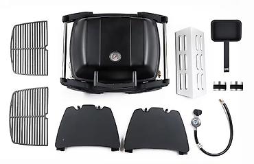 - Большая рабочая поверхность: две чугунные решетки BBQ + съемный гладкий лист «Сковорода» для яиц, овощей, морепродуктов и деликатных продуктов.