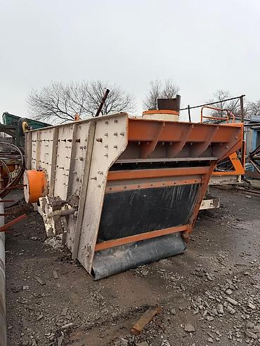 - Трёхдековый вибрационный грохот с перфорированными ситами; боковой привод с вибровозбудителем; боковые сходы материала.