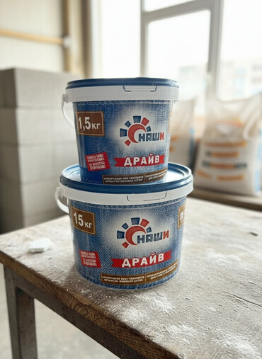 Грунтовка «Наши Драйв» в пластиковых ведрах. Универсальная грунтовка для стен и потолков, подходит для различных видов отделочных работ. Ведра с удобными ручками для переноски.