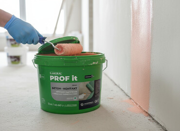 Грунтовка Lakra PROF it Бетон-Контакт. Предназначена для предварительной обработки плотных, гладких поверхностей перед нанесением штукатурки, плиточного клея и других отделочных материалов. Обеспечивает прочное сцепление между основанием и последующим покрытием. Подходит для внутренних и наружных работ.
