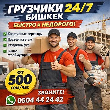 Грузчики, Бишкек 24/7 Профессиональные услуги погрузки/разгрузки и разнорабочие работы: - Квартирные и дачные переезды - Подъём и перенос строительных материалов - Разгрузка фур - Вывоз строймусор...