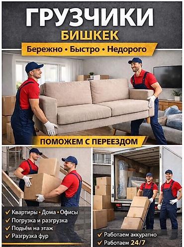 Грузчики Кызмат: Грузчики/грузовые машины Переезд кызматтары 🏠Батир жана офис кочуруу 🏡дача жана курулуш материалдардын Жеткируу 🚛Жук жуктоо, тушуруу 🗑️ Мусор чыгаруу 🪘Жыгач жана эмерек чогул...