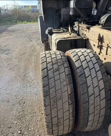 Самосвал с оранжевым кузовом, предназначенный для перевозки сыпучих материалов. Оснащен двойными задними колесами для улучшения устойчивости и грузоподъемности. Задние фонари и брызговики обеспечив...